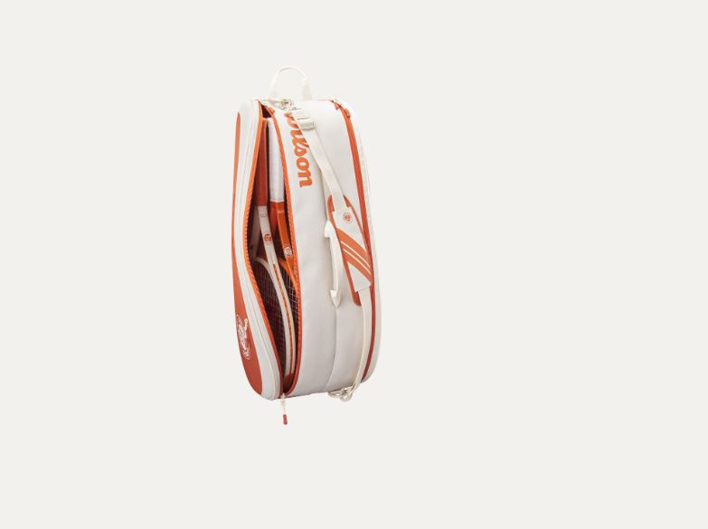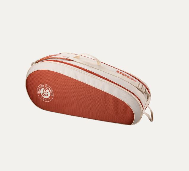 Este raquetero está inspirado en los colores, la elegancia del diseño y las tradiciones de Roland-Garros, el torneo de tierra batida más grande del mundo. Ofrece espacio para varias raquetas de tenis, una muda de ropa y algunos otros elementos esenciales del día del partido.